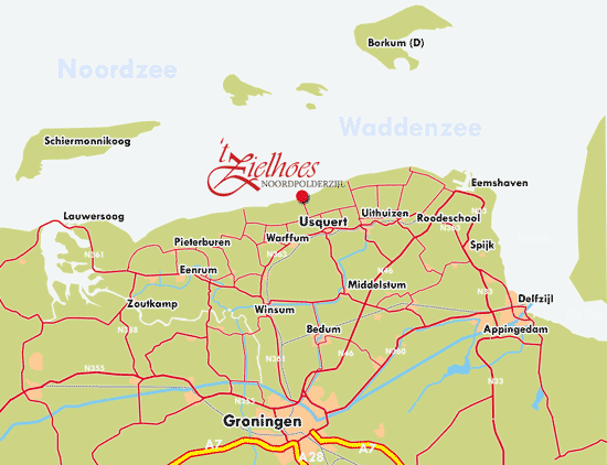 Komend uit der richting Groningen, Delfzijl of Lauwersoog rijdt u naar Usquert of Warffum. Daar wordt u door middel van duidelijke bebording naar Noordpolderzijl geleid.